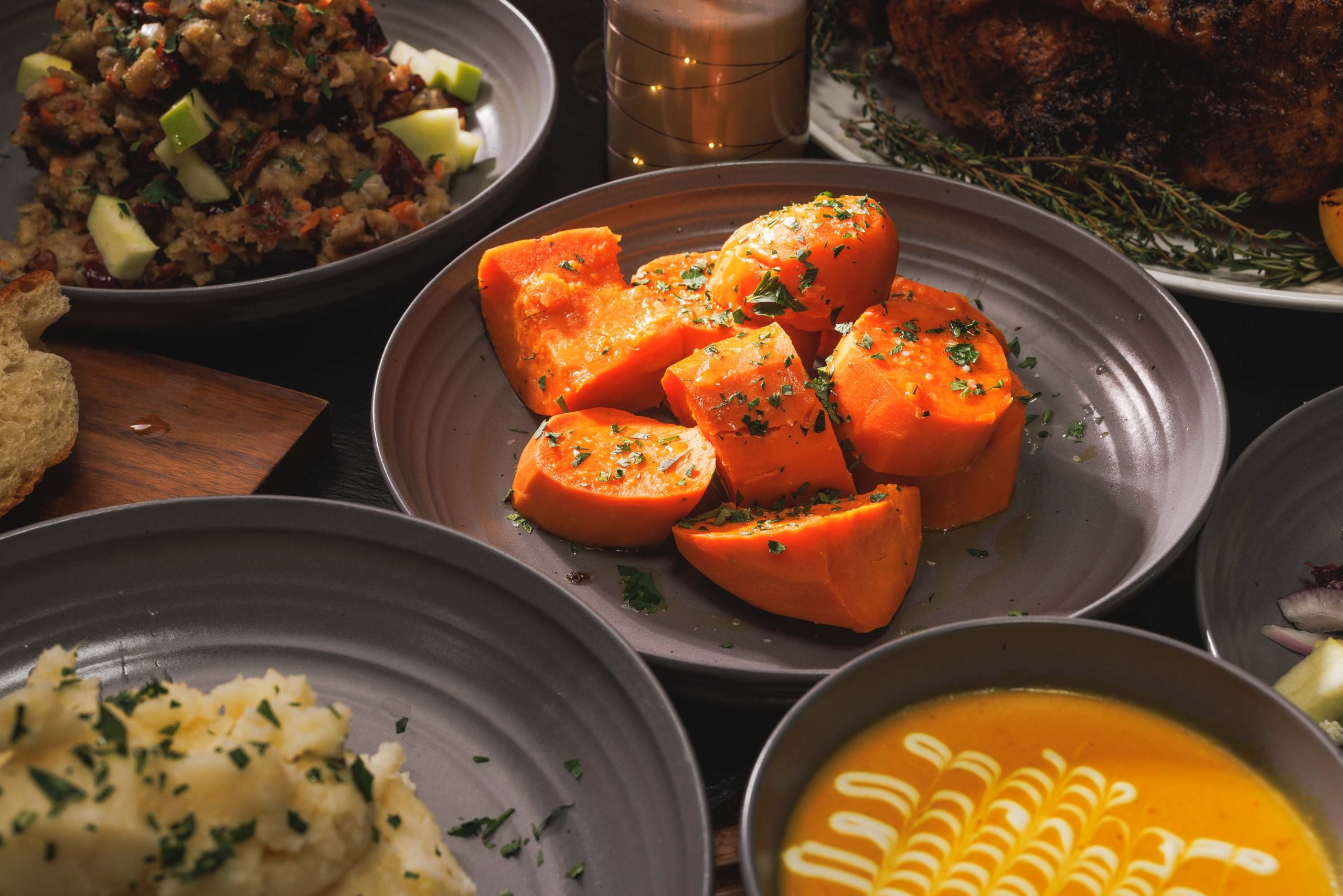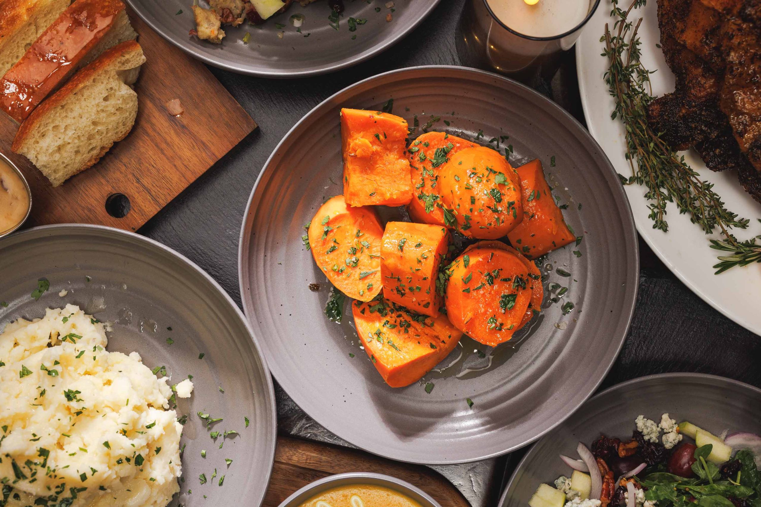 A full Thanksgiving spread featuring all your favorites — from perfectly roasted turkey and seasonal sides to our house-made desserts.